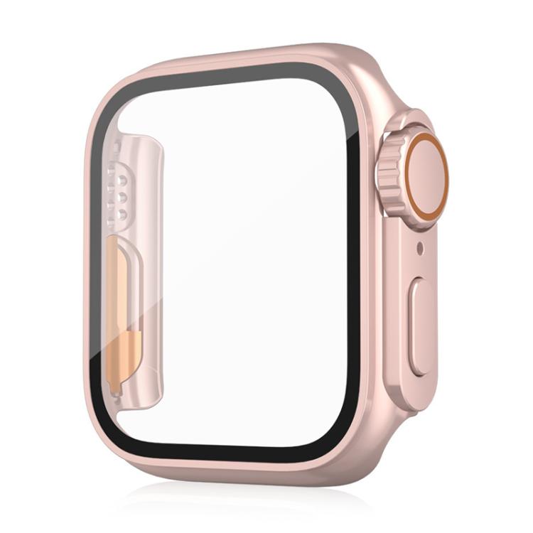 Para Apple Watch Series 9/8/7 de 45 mm xDfind Cambiar a Ultra 49 mm Película de vidrio templado Cubierta de reloj de PC integrada (oro rosa + naranja)