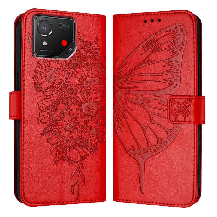 Funda de Cuero Asus Rog Phone 8 con Mariposa en Relieve (Rojo)