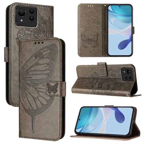 Funda de Cuero para Asus Zenfone 11 con Mariposa en Relieve Ultra (Gris)
