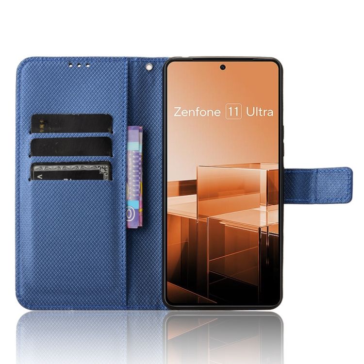 Funda de Cuero para Asus Zenfone 11 Ultra con Textura Diamond (Azul)
