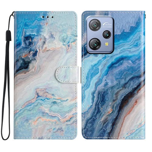 Funda de Cuero para BlackView A53 Pro con Dibujo Coloreado Mármol Azul