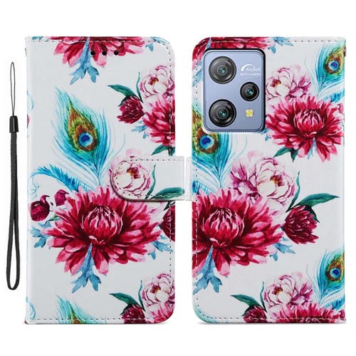 Funda de Cuero para BlackView A53 Pro con Tapa Horizontal y Patrón Flor de Pavo Real