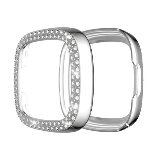 Para Fitbit VERSA 3 / VERSA SENSE SENSE DOBLE ROW CLATCHS DIAMANTES PC Funda protectora (Plata)