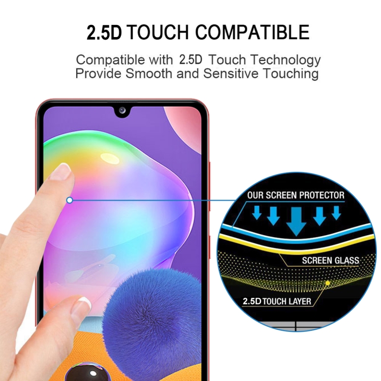 Película de Vidrio Templado Galaxy A31 9H Dureza Superficial 2.5D Pantalla Completa con Pegamento