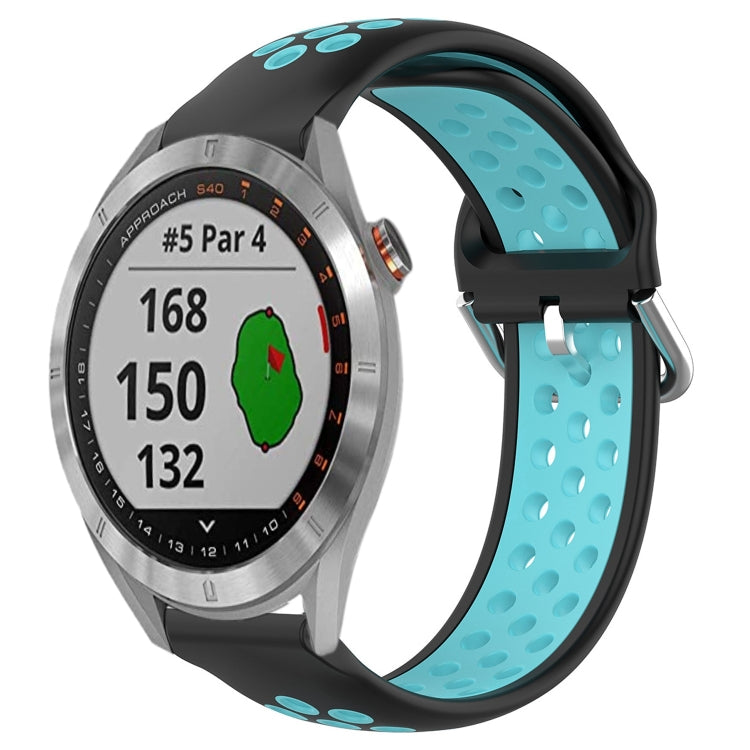 Banda de Reloj de Silicona Deportiva para Garmin Approach S40 20mm (Negro + Azul)