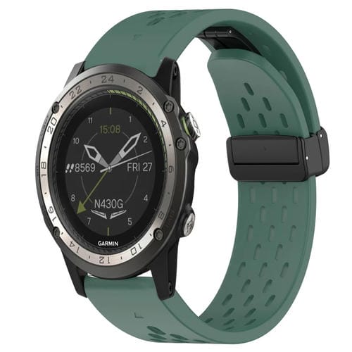 Correa de Silicona para Garmin D2 Charlie con Hebilla Plegable y Orificio 26mm (Verde Oscuro)