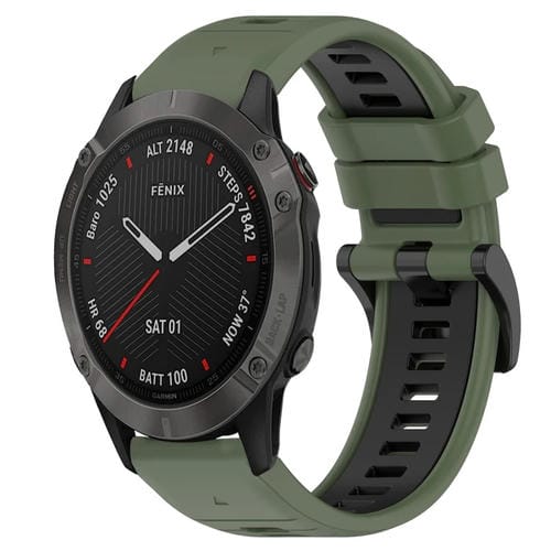 Correa silicona 22mm para Garmin Fenix 6 Pro GPS Sports (Verde oliva + Negro)