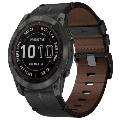 Correa de Reloj para Garmin Fenix 7 Sapphire Solar 22mm con Textura de Cuero (Negro)