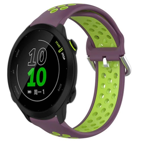 Banda de Reloj Deportiva Garmin Forerunner 158 20mm Silicona Transpirable Perforada (Púrpura + Lima)