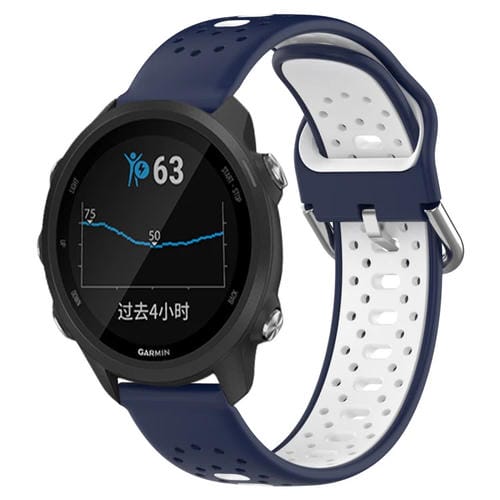 Banda de Reloj Garmin Forerunner 245 20mm Silicona Transpirable Dos Colores (Azul Medianoche + Blanco)