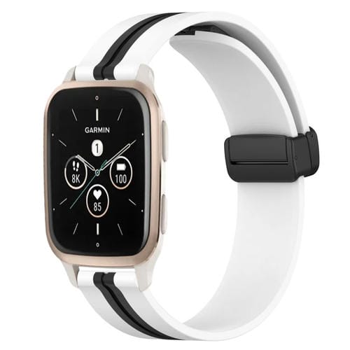Correa de Reloj para Garmin Forerunner Sq2 Music 20mm Silicona con Cierre Magnético Plegable (Blanco + Negro)