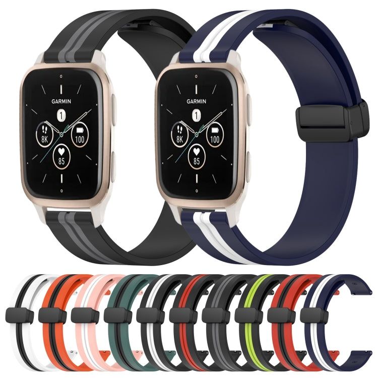 Correa de Reloj Garmin Forerunner Sq2 Music 20mm silicona cierre magnético plegable (Negro + Verde Lima)