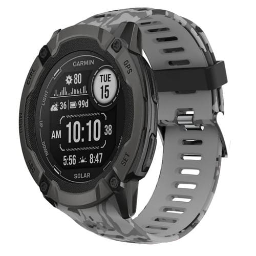 Correa de Reloj para Garmin Instinct 2X Solar 26mm Silicona Estampado Camuflaje (Gris + Ejército)