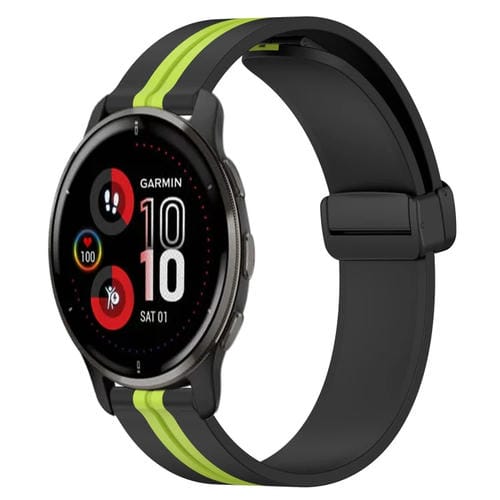 Correa de Reloj para Garmin Venu 2 Plus 20mm Silicona con Cierre Magnético Plegable (Negro + Verde Lima)