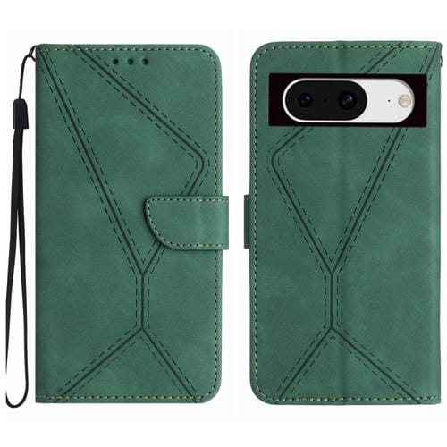 Funda de Cuero para Google Pixel 8A con Costuras en Relieve (Verde)