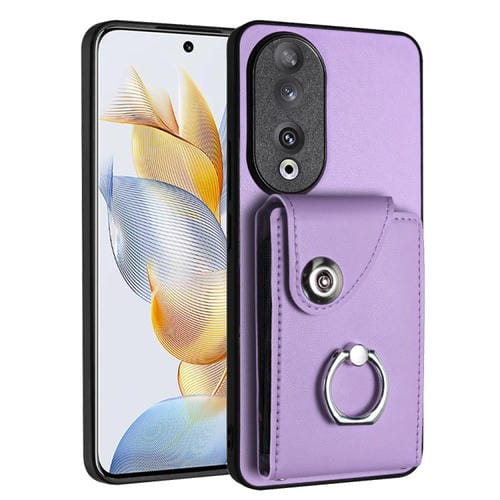 Funda para teléfono Honor 90 de PU con soporte para anillo y bolsa para tarjeta de órgano (Púrpura)