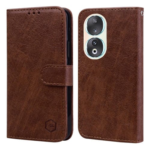 Funda para Honor 90 Skin Feeling Oil Leather Texture PU + TPU (Marrón)