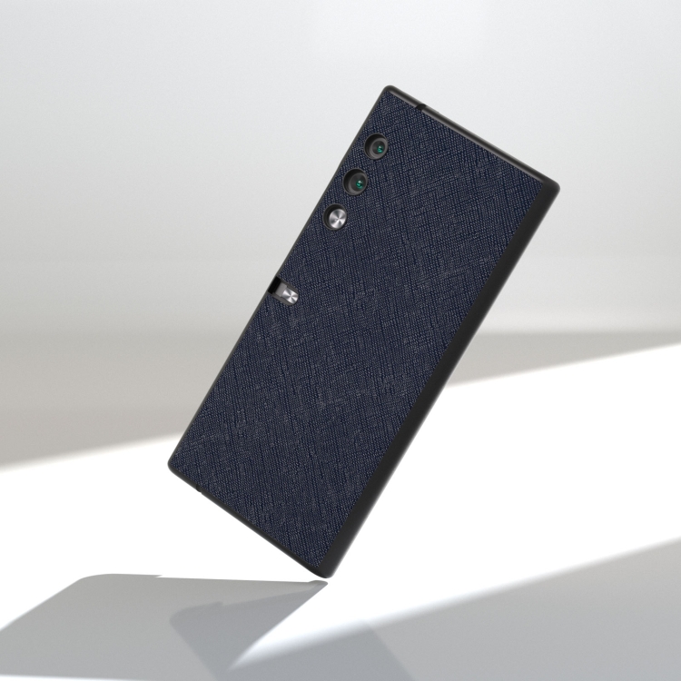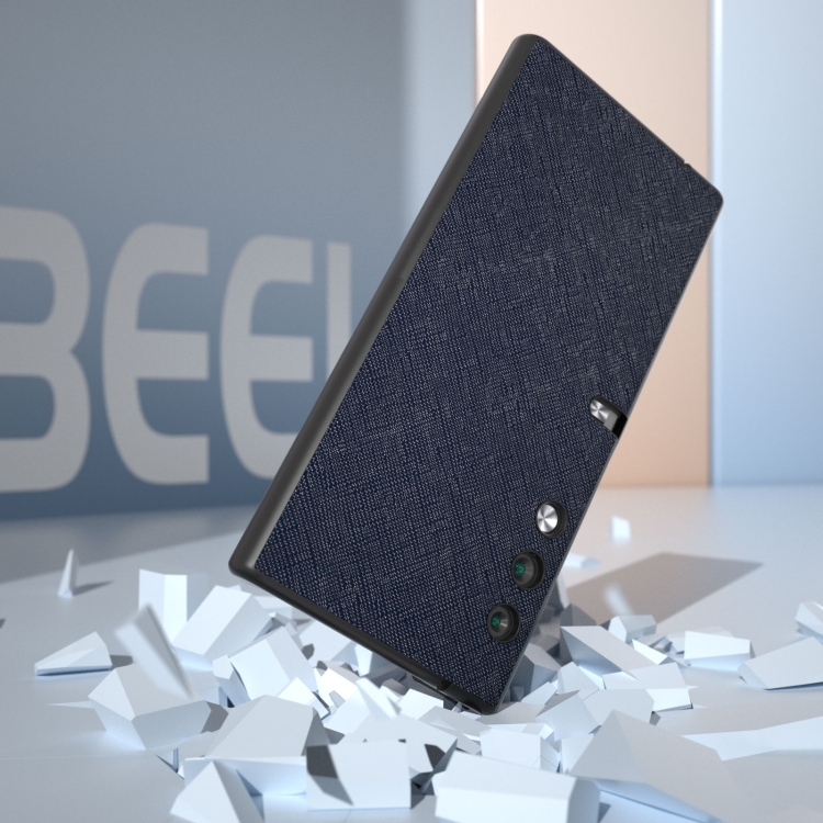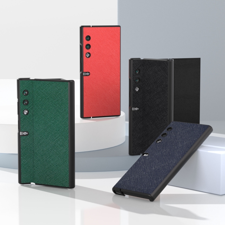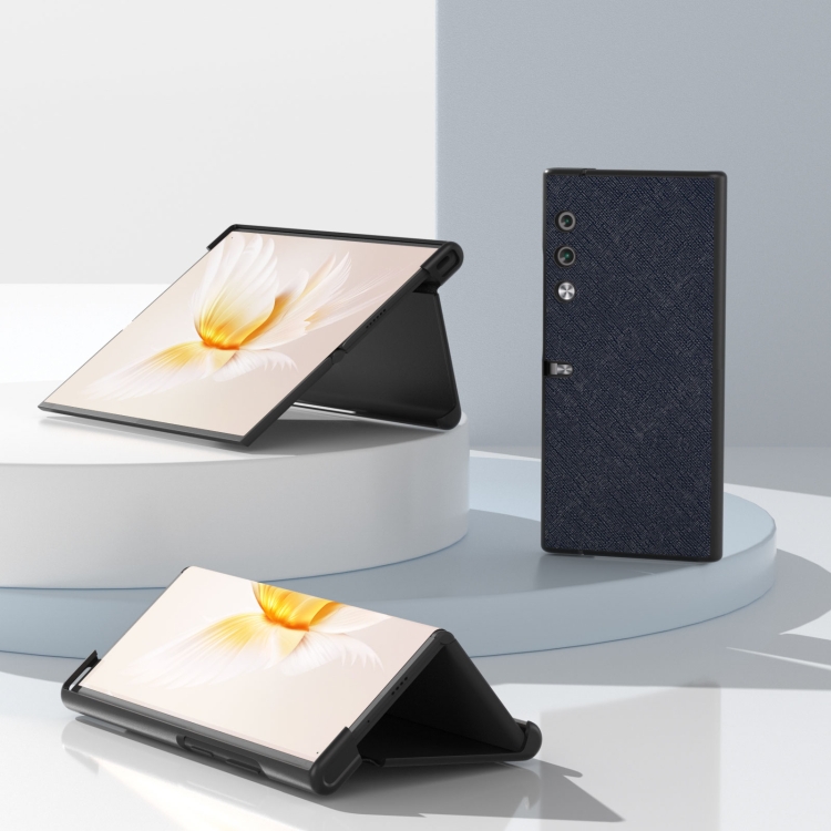 Funda Monedero para Honor V de Cuero Genuino con Textura Cruzada (Azul)