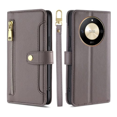 Funda de Cuero para Honor X50 5G Lite con Billetera, Cremallera y Textura de Oveja (Gris)