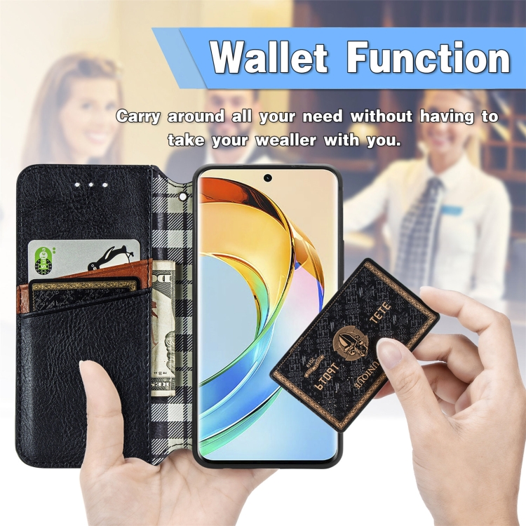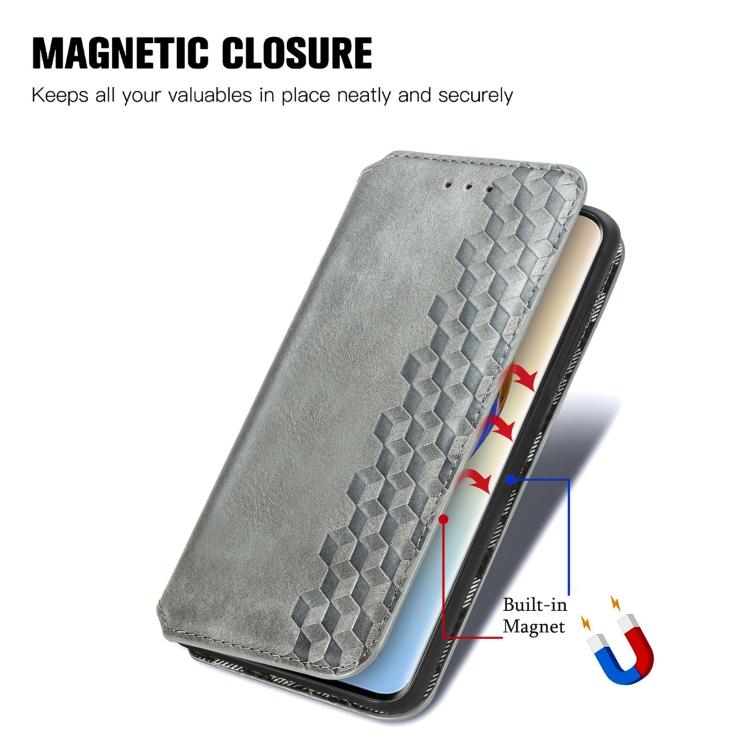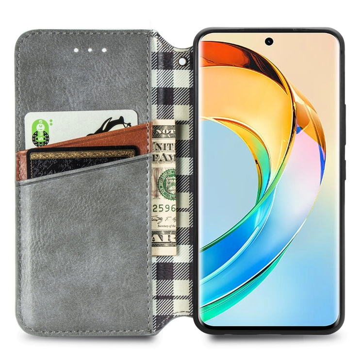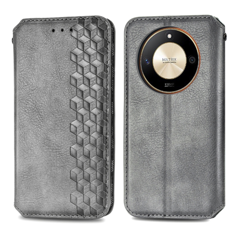 Funda para Honor X50 Cubic Grid de Cuero Magnético Prensado (Gris)