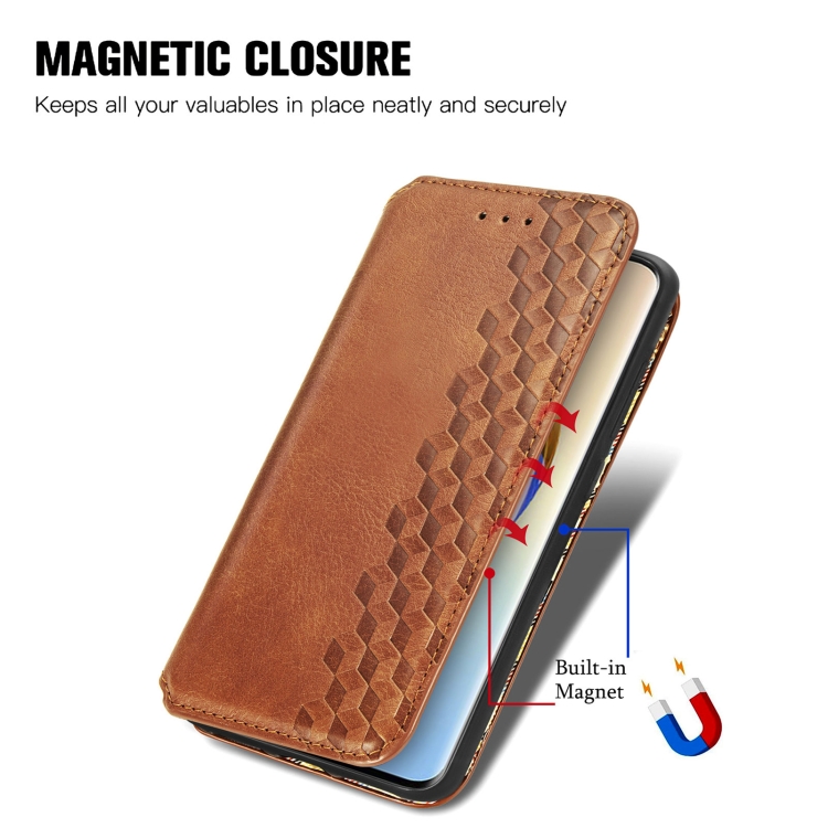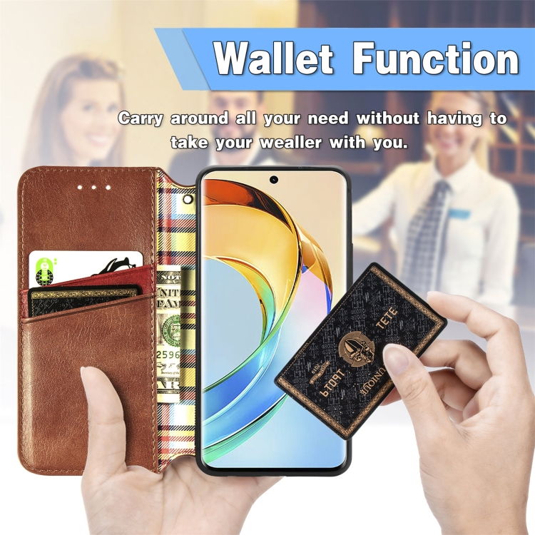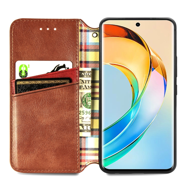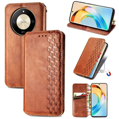 Funda para Honor X50 Cubic Grid Cuero Magnético Prensado (Marrón)