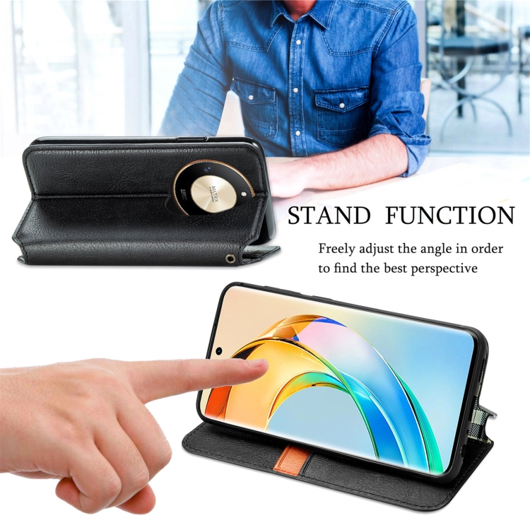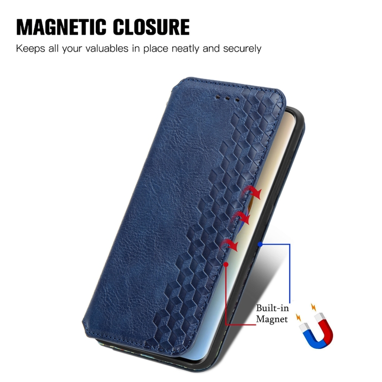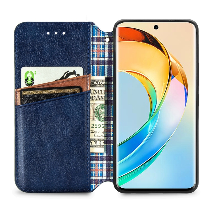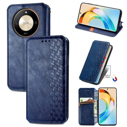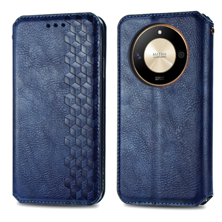 Funda para Honor X50 de Cuero Magnético Prensado con Rejilla Cúbica (Azul)
