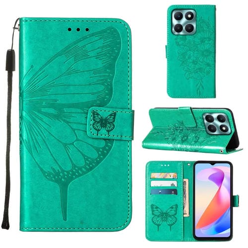 Funda de Cuero para Honor X6A con Mariposa en Relieve (Verde)