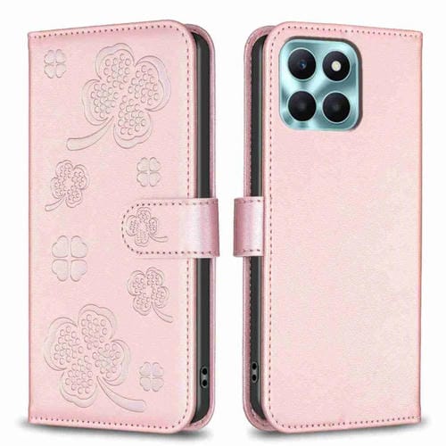 Funda para Honor X6A de Cuero con Relieve de Cuatro Hojas (Rosa)