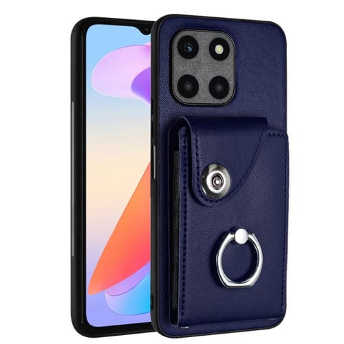 Funda para Honor X6A de PU con Soporte para Anillo y Bolsa para Tarjeta (Azul)