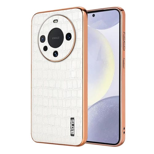 Estuche para Huawei Mate 60 Azns con Textura de Cocodrilo y Marco Galvanizado (Blanco)