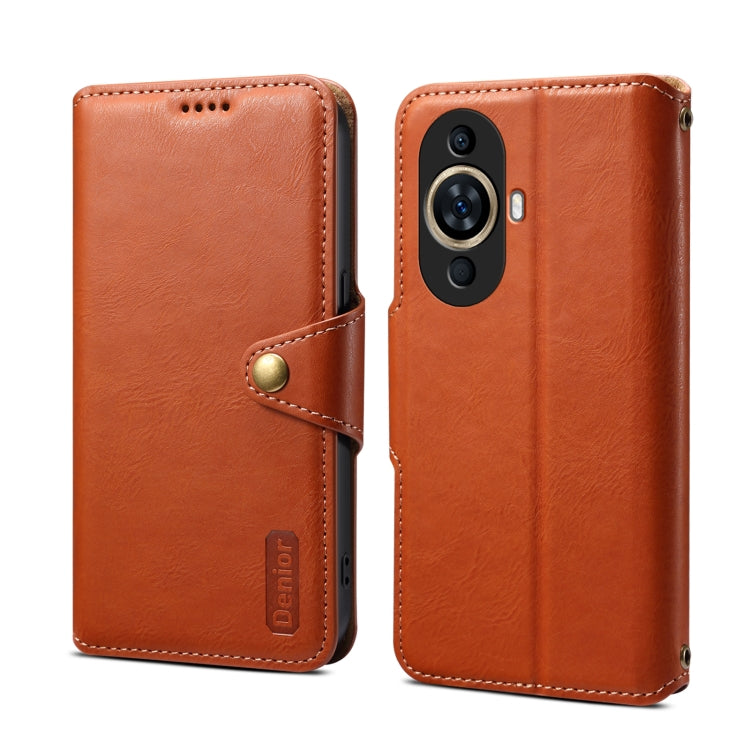 Funda para Huawei Nova 11 Denior Cuero Estilo Billetera Textura Piel de Vaca (Marrón)