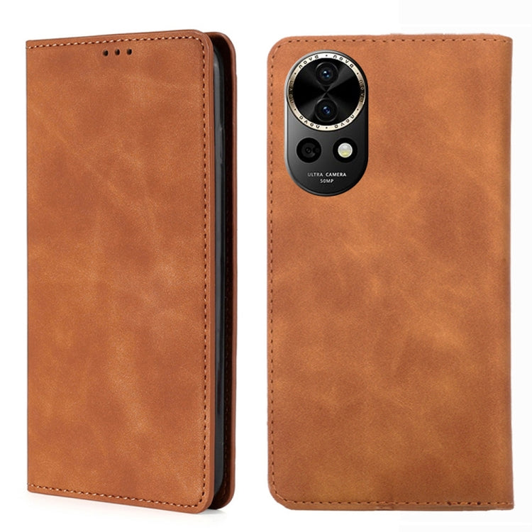 Funda de Cuero Magnética para Huawei Nova 12 5G Skin Feel (Marrón Claro)