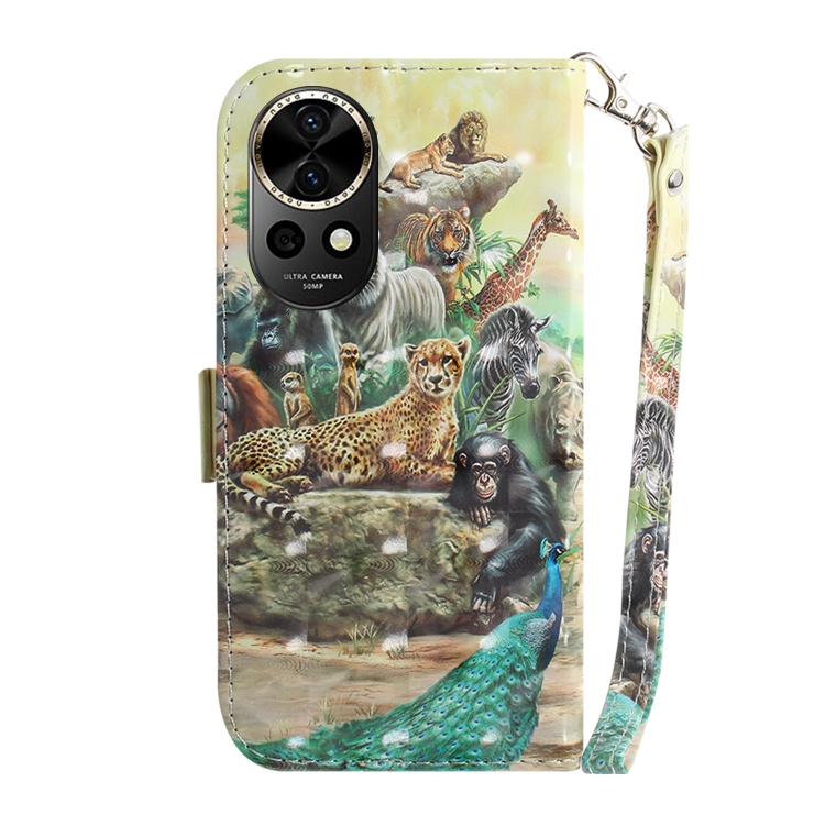 - 1x Funda de Cuero para Huawei Nova 12 con Tapa Horizontal y Diseño 3D (Zoo)