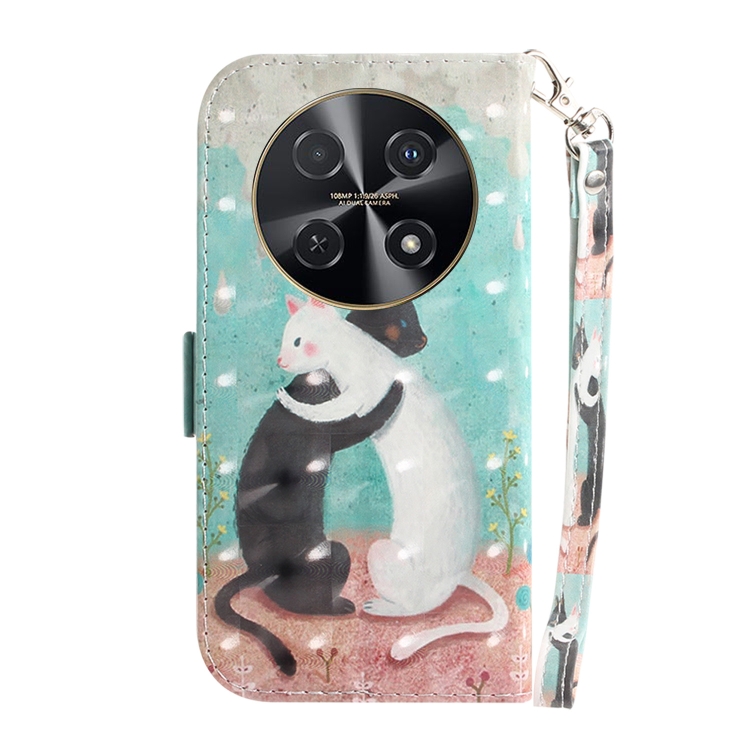 - 1x Funda de Cuero 3D para Huawei Nova 12I 4G Global con Tapa Horizontal (Gato Blanco Negro)