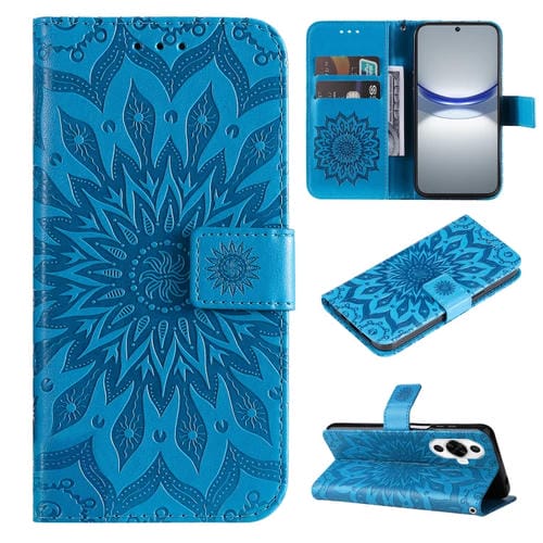 Funda de Cuero con Tapa para Huawei Nova 12S con Patrón de Girasol en Relieve (Azul)