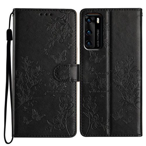 • 1x Funda de Cuero Huawei P40 con Relieve Flor de Amor y Mariposa (Negro)