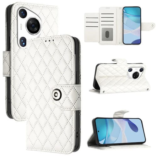 Funda de Cuero para Huawei Pura 70 Pro con Tapa Textura Rombal y Cordón (Blanco)