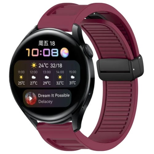 Correa de Silicona para Huawei Watch 3 con Hebilla Magnética Plegable 22mm (Rojo Vino)
