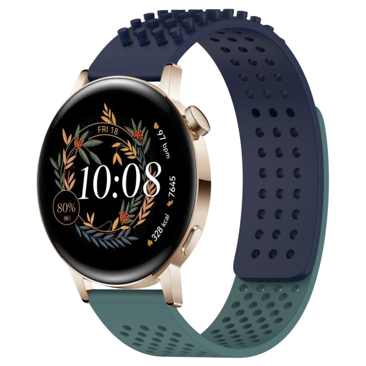Correa de Silicona para Huawei Watch GT3 42mm 20mm Agujeros Puntos 3D Transpirables (Azul Medianoche + Verde Oliva)