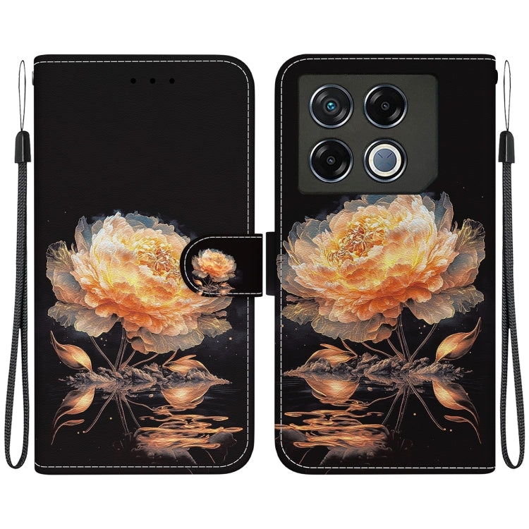 Funda de Cuero para Infinix GT 20 Pro con Dibujo Coloreado y Textura de Cristal (Peonía Dorada)