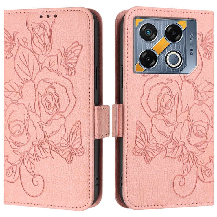 Funda de Cuero Antirrobo RFID para Infinix GT 20 Pro con Relieve (Rosa)