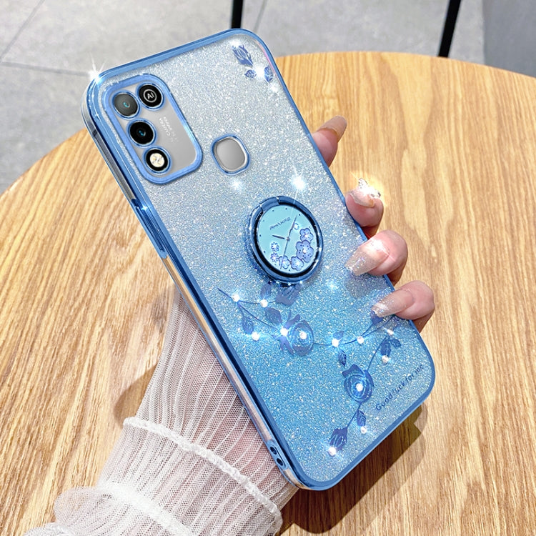 Estuche para Infinix Hot 10 Play con Anillo de Flor Inmortal y Brillo Degradado (Azul)