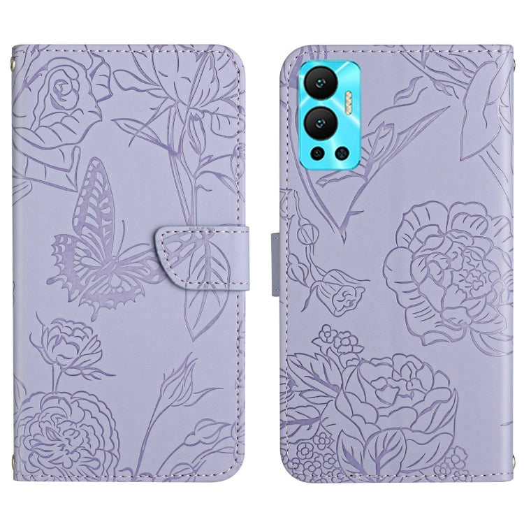 Funda de Cuero para Infinix Hot 12 Ht03 con Tapa en Relieve Skin Feel Butterfly (Púrpura)