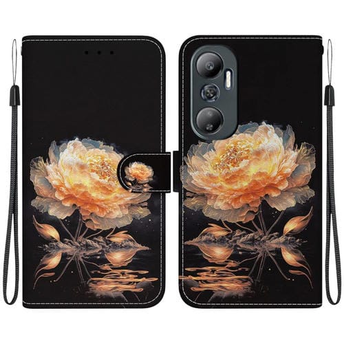 Funda de Cuero para Infinix Hot 20 con Dibujo Coloreado y Textura de Cristal (Peonía Dorada)