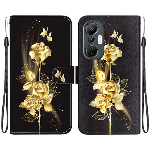 Funda de Cuero para Infinix Hot 20S con Dibujo Coloreado y Textura de Cristal (Mariposa Dorada Rosa)