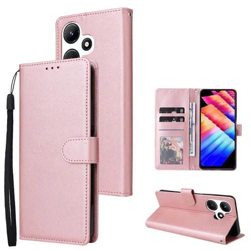 Funda para Infinix Hot 30I de Cuero Multifuncional con 3 Ranuras para Tarjetas (Oro Rosa)