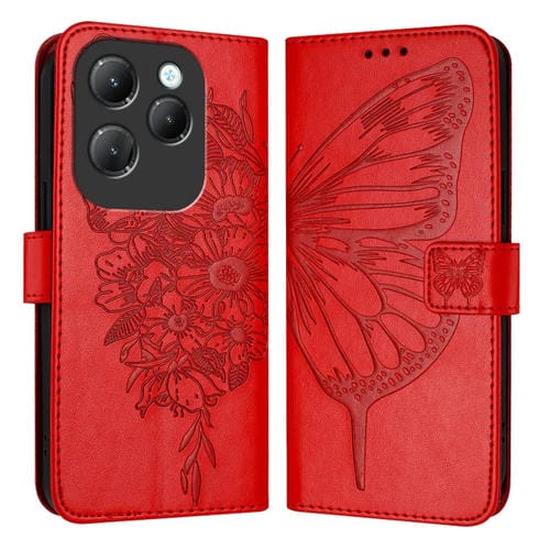 Funda de Cuero para Infinix Hot 40 y Hot 40 Pro con Mariposa en Relieve (Rojo)