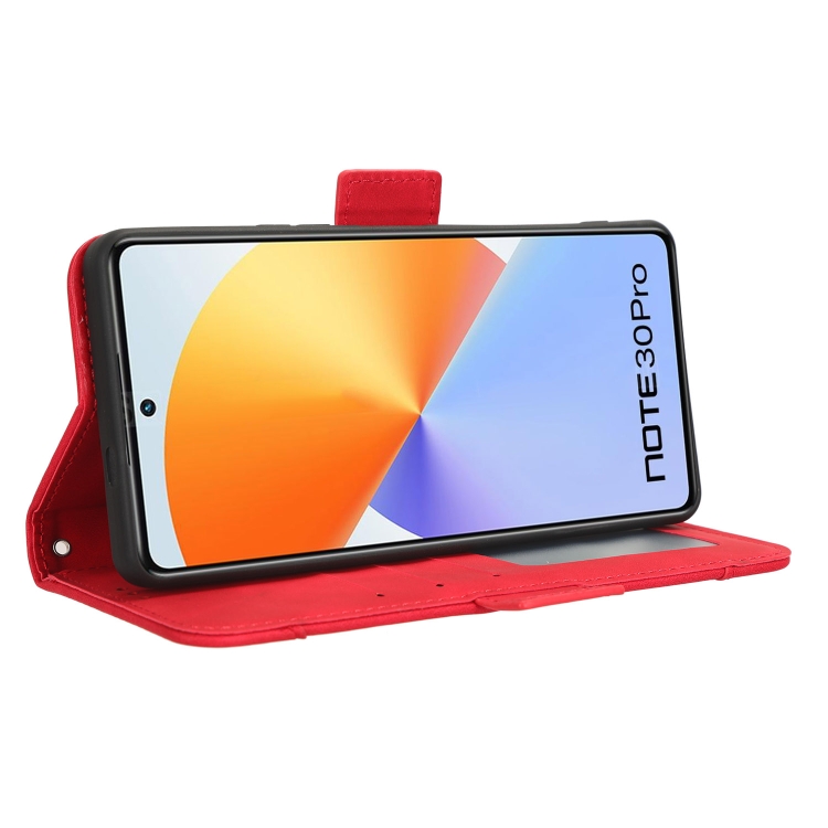 Funda de Cuero para Infinix Note 30 Pro con Ranuras para Tarjetas y Textura Skin Feel (Rojo)