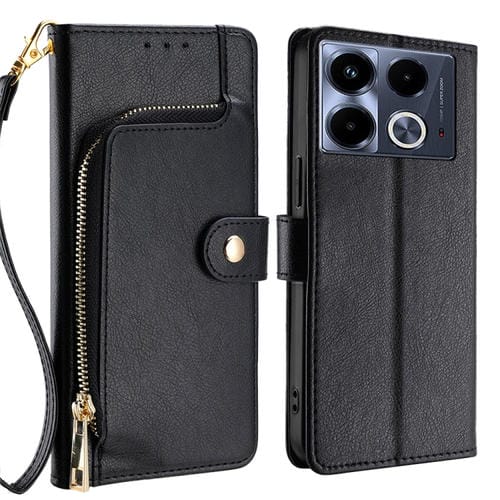 Funda de Cuero para Infinix Note 40 4G con Bolsa y Cremallera (Negro)