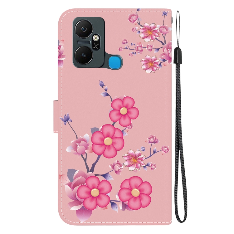 Funda de Cuero para Infinix Smart 6 Plus con Dibujo Coloreado y Textura de Cristal (Flores de Cerezo)